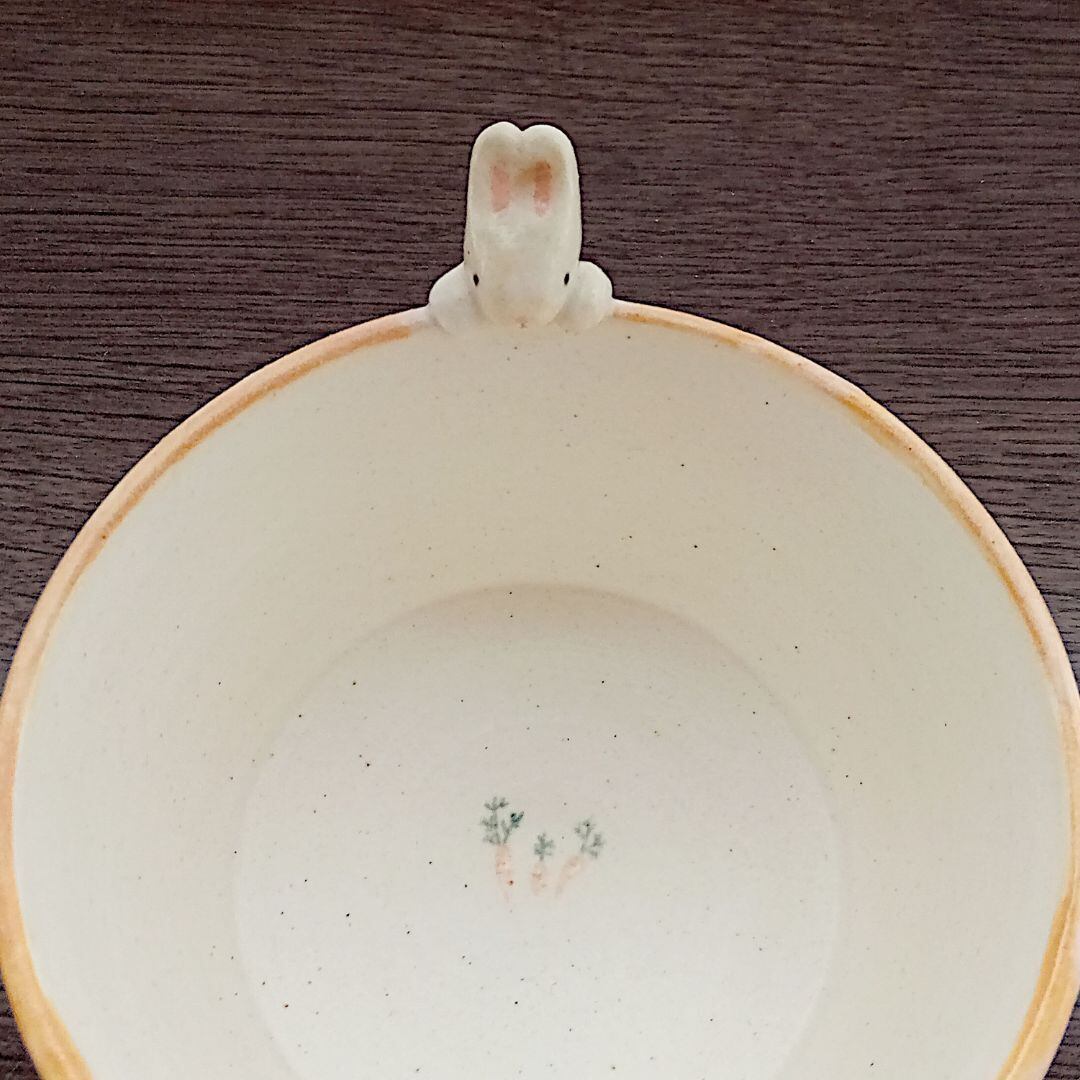 ボウルに顔をのぞかせる小さなうさぎさんがあまりにも愛らしいうつわです。