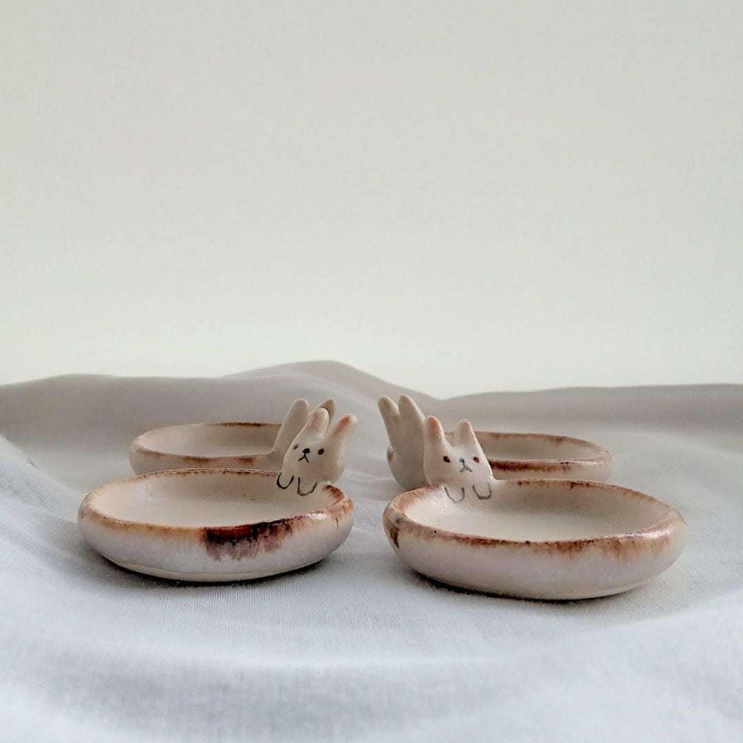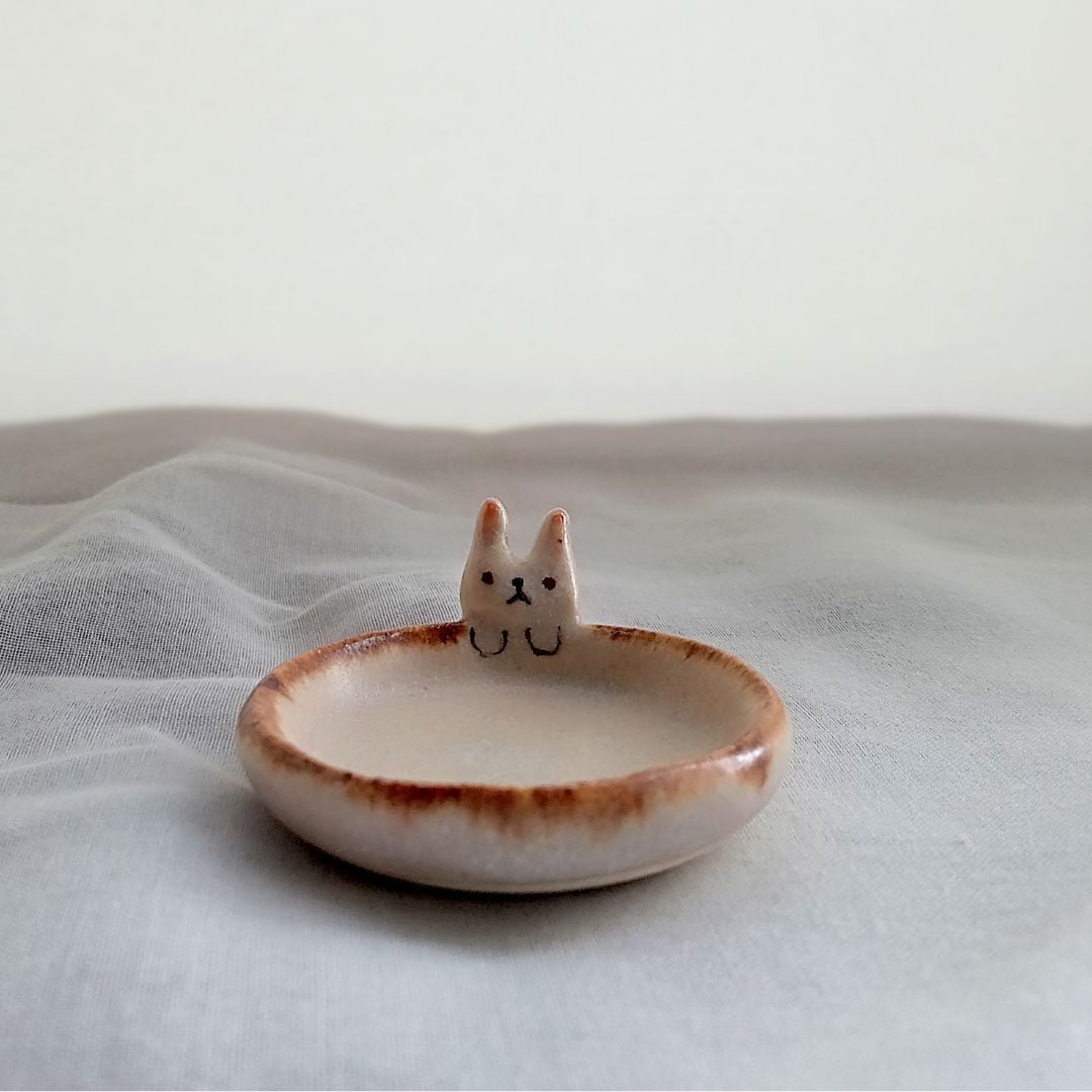 小さなうさぎがちょこんと乗っている、豆豆皿。