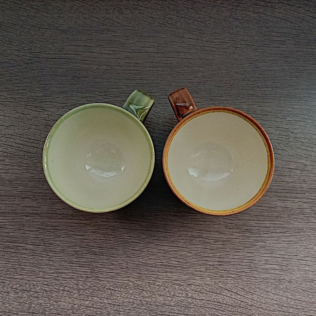 飲み物のお色を楽しんで頂くため、内側は落ち着いた白の釉薬が掛かっています。