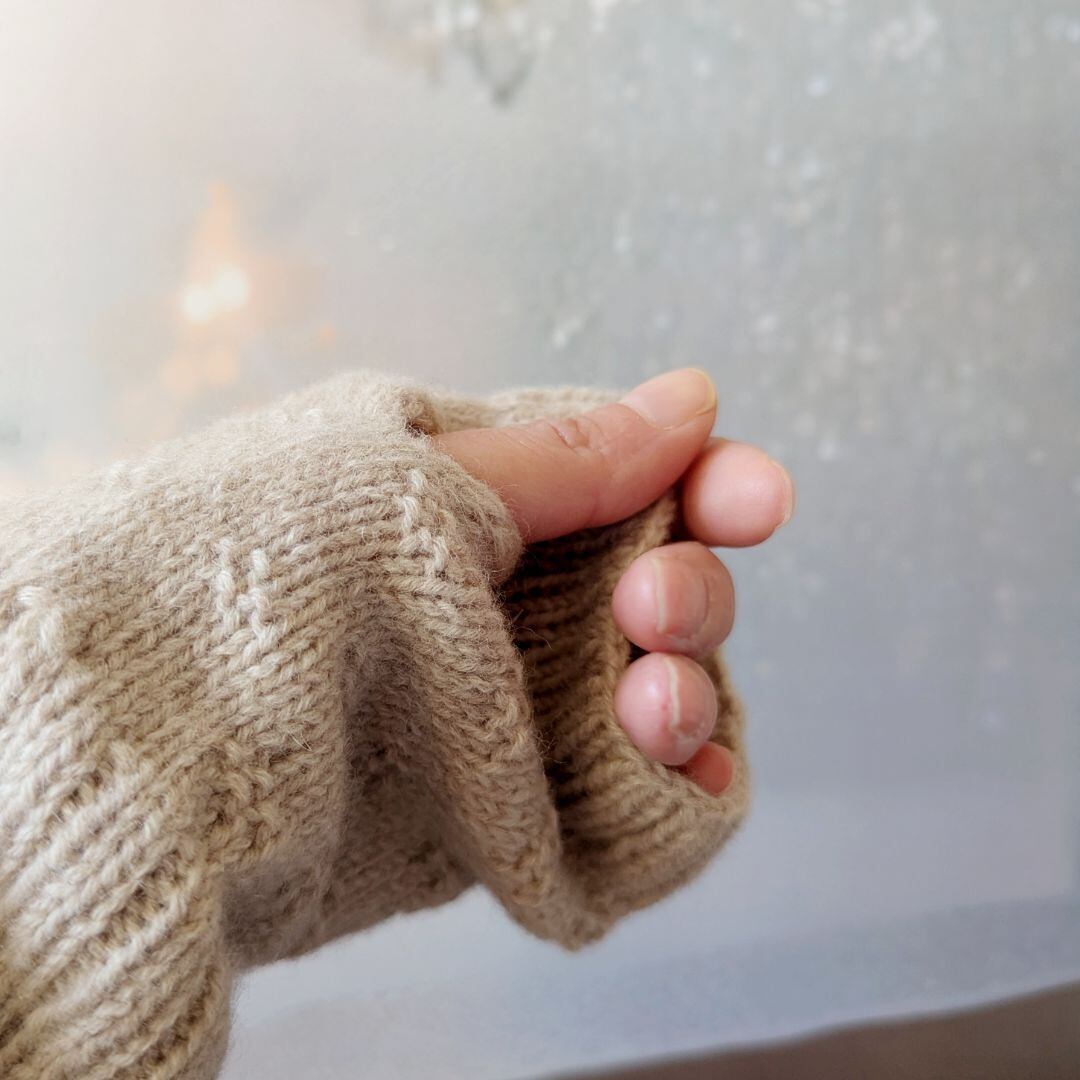 保温性が高く長めに編まれているため、手と腕をすっぽりと温めてくれますよ。