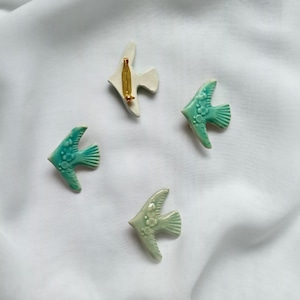 爽やかな色の鳥のブローチです。
