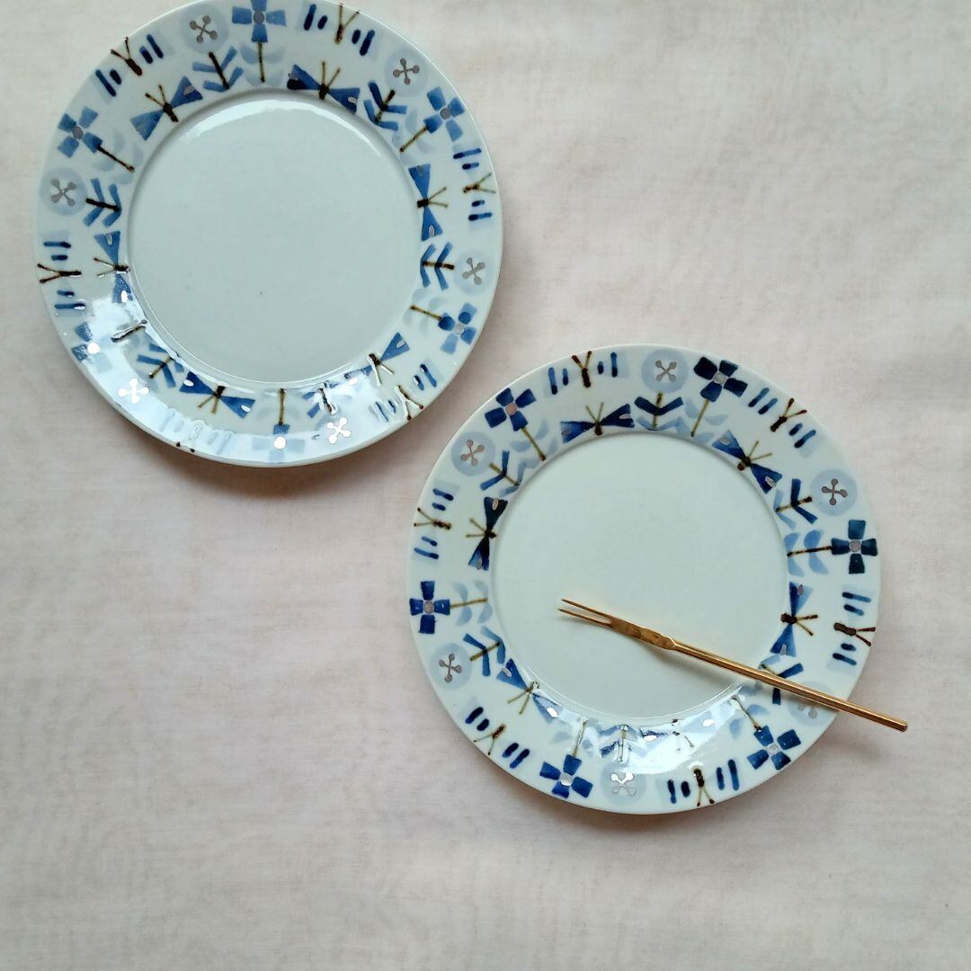 北の大地を舞うちょうちょや可憐なお花が、一枚のリム皿にぎゅっと描かれた美しいうつわです。