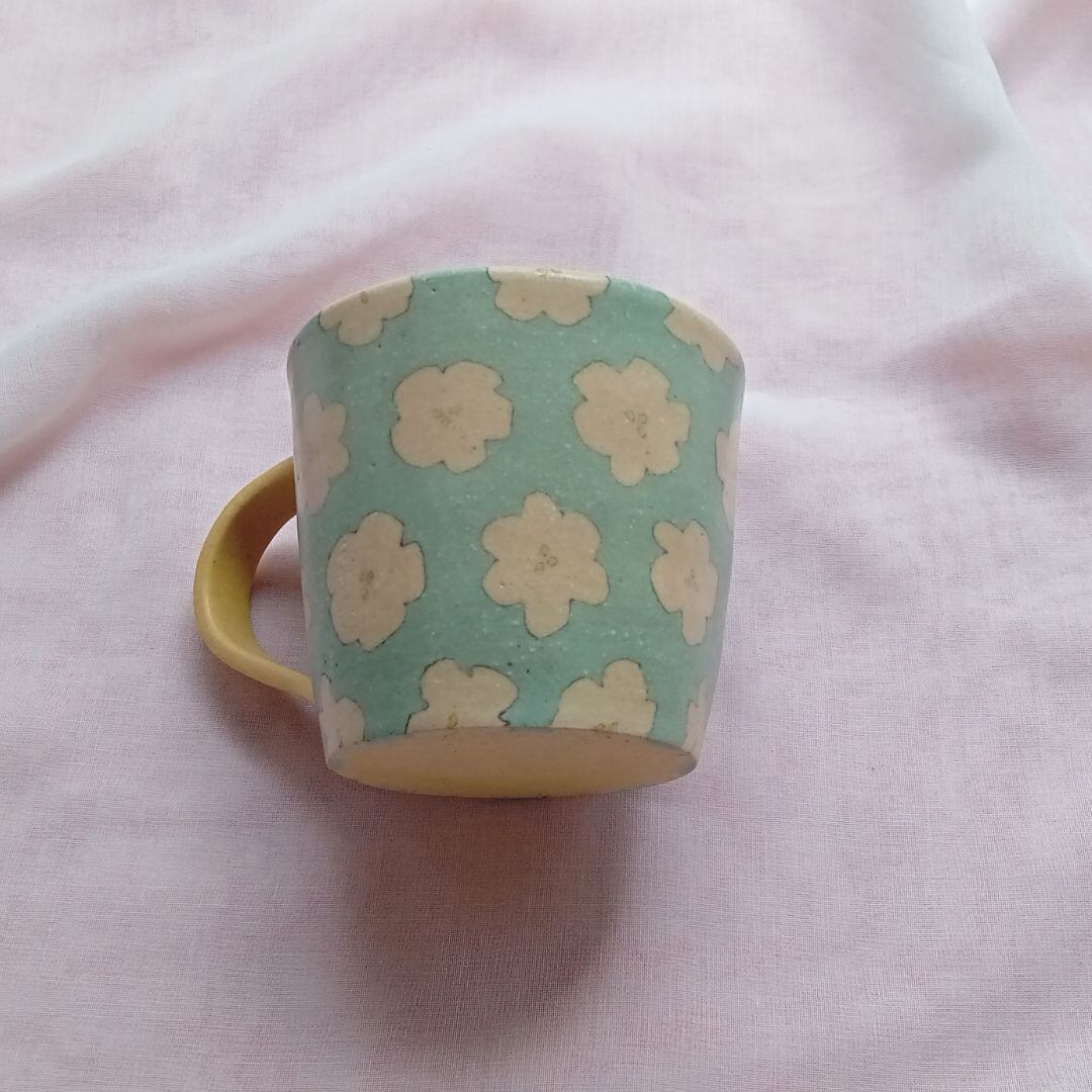 やさしいカラーと可憐なお花が、ほっと一息つくときに使いたいマグです。