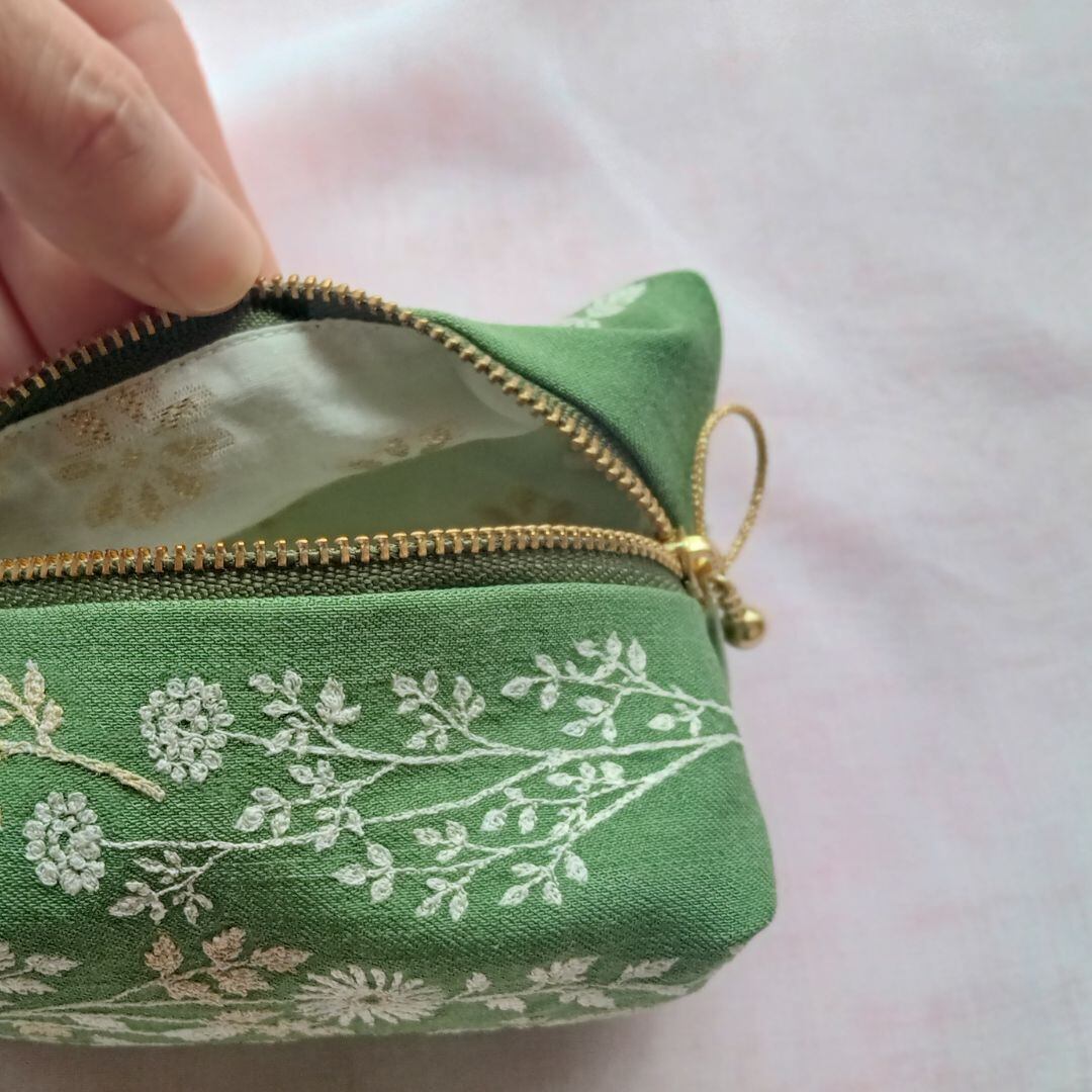 草花刺繍のポーチ nui+