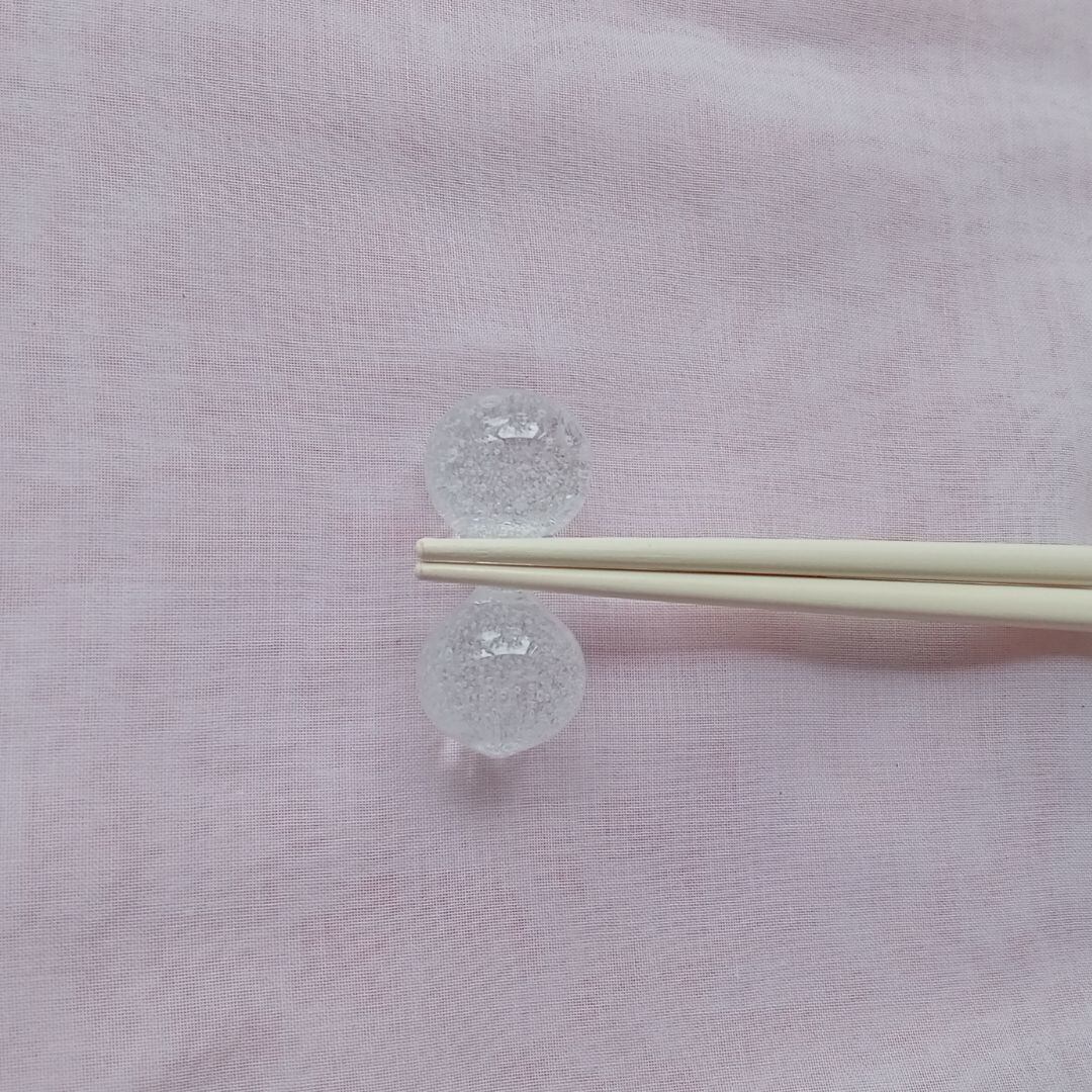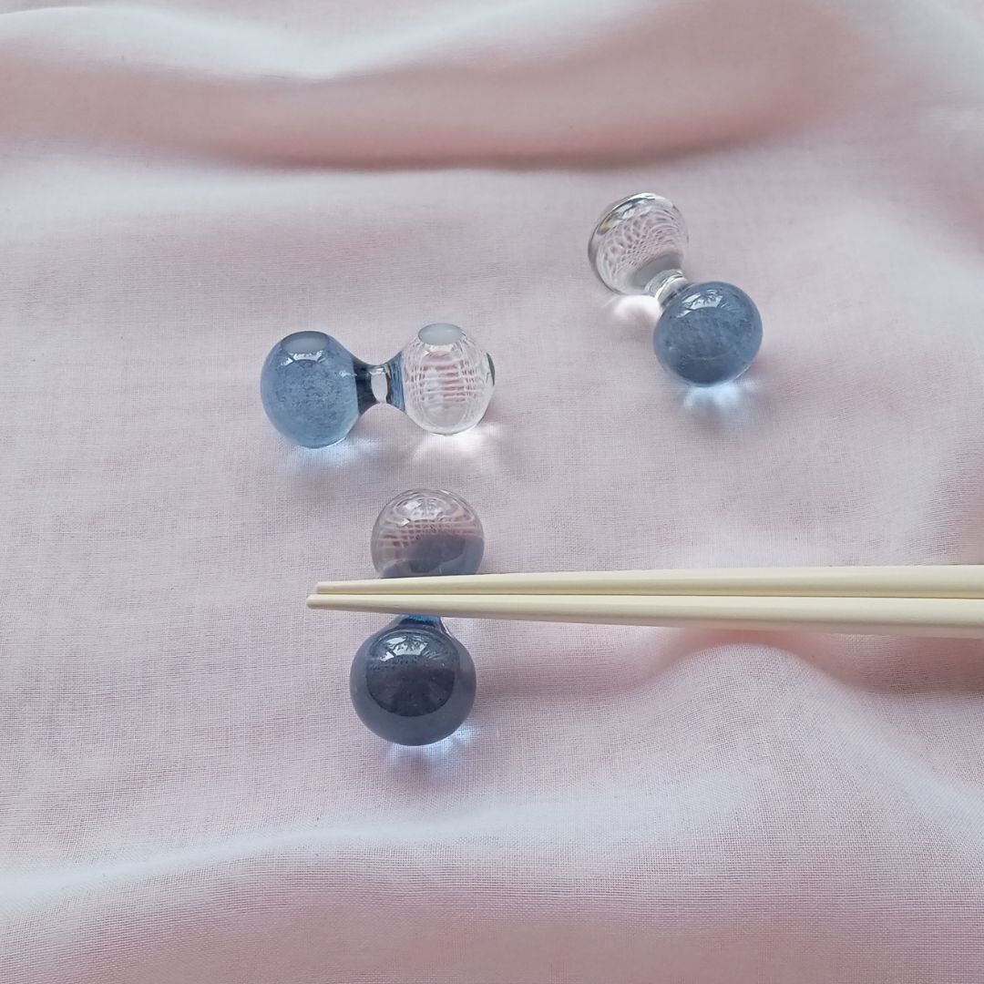 白い箸置きはガラスを二重に巻いてあり、青い箸置きはパウダーで涼しげな表情にしてあります。