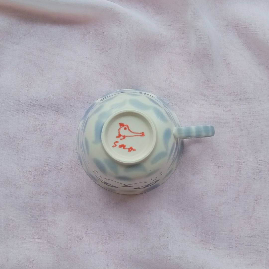 ひとつのカップに違うネコの顔が描かれたユニークなうつわです。