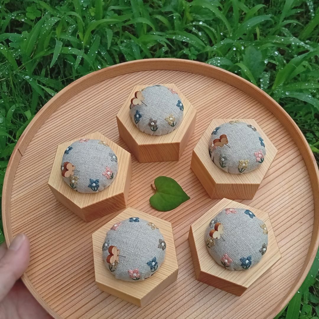 刺繍の針山〈cocca〉*ちょうちょのまち針付き* mizutanidouguten × 銘木工房ゆら木